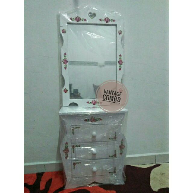 Dressing table led mirror drawer rack cosmetic make up skincare meja laci .